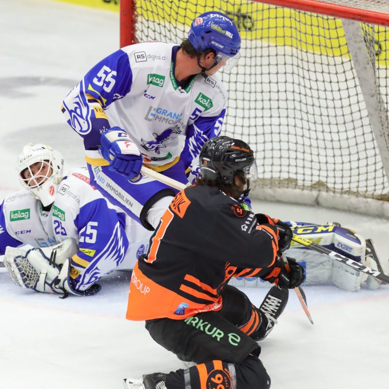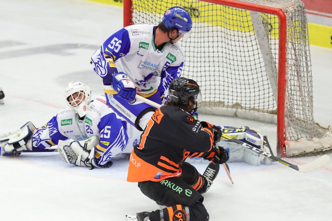 Die „Adler“ starteten ziemlich verhalten ins Match, die ersten Chancen hatten die Grazer. Alexander Schmidt im VSV-Tor musste in den Anfangsminuten gleich einige Male gegen die Stürmer der 99ers eingreifen. Die erste gute Chance gab es für die Blau-Weißen erst in der 7. Minute, doch Chris Collins scheiterte knapp am neuen kanadischen Goalie der Grazer, Olivier Rodrigue. Graz-Stürmer Hunter Fejes in der 8. Minute mit einer Top-Chance den Führungstreffer am Schläger – er zog alleine auf und davon, doch VSV-Goalie Ali Schmidt vereitelte noch mit einem Super-Abwehr diese Solochance. Doch in der 15. Minute war es dann soweit: Die Grazer gingen nach schönem Zusammenspiel durch Philipp Lindner in Führung, bevor 99ers-Goalgetter Hunter Fejes nur vier Minuten später sogar auf 0:2 (19. ) erhöhte. So blieb es auch nach 20 Minuten.