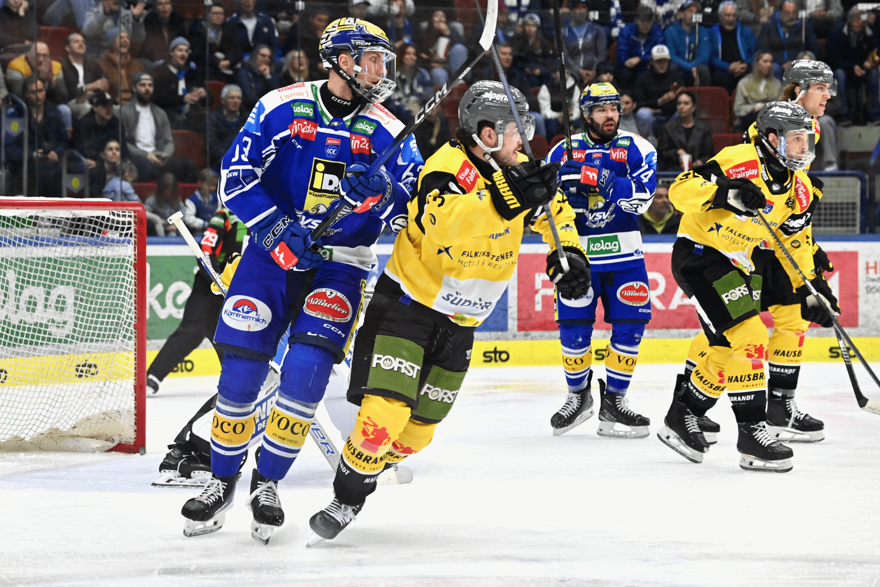 Kein Abtasten zu Beginn der Partie: Der EC iDM Wärmepumpen VSV bekam es mit einem von Beginn an aggressiv auftretenden HC Pustertal zu tun. Die Gäste kamen mit voller Kapelle, setzten die Adler mit gefährlichem Forecheck unter Druck und prompt folgte die erste Strafe. In Minute zwei verlor Nico Uschan hinter dem eigenen Tor die Scheibe, John Hughes beförderte sie bei der Kläraktion über die Spielfeldumrandung und musste wegen Spielverzögerung zwei Minuten zusehen. Villach verteidigte die Unterzahl sehr solide, hielt die eigene blaue Linie aggressiv und ließ keine nennenswerte Chance zu. Bitter allerdings: Guus van Nes bekam kurz vor Ablauf der Strafe einen Puck ins Gesicht, verließ blutüberströmt und schmerzverzerrt das Eis. Mit Ablauf der Strafe wurde erstmals Eddie Pasquale geprüft, ein Fernschuss von links außen kam gefährlich vors Tor, Joel Teasdale kam beinahe an den Rebound. Pustertal spielte sich zwar immer wieder in der Villacher Zone fest, doch die Adler hielten die Gäste konsequent außen. Gefährlicher war Blau-Weiß: In Minute sieben tankte sich Budgell über das gesamte Eis durch und schloss vor Pasquale gefährlich ab. Den Führungstreffer erzielten jedoch die Gäste: Saracino und Bardreau überspielten mit viel Speed die Defensive, Saracino legte perfekt in den rechten Halbraum, wo Austin Osmanski halbhoch in die lange Ecke einschoss. Es blieb gefährlich vor Joe Cannata: Rok Ticar setzte sich durch, legte zurück auf Glira, dessen Direktschuss Cannata mit dem Blocker parierte. Auch Villach blieb brandgefährlich und kam zu einer Doppelchance: Elias Wallenta legte quer auf Philipp Lindner, Pasquale parierte aus dem Bullykreis, danach eroberte Budgell im Forecheck die Scheibe, Teasdale scheiterte aus dem Slot an der Schulter des Goalies. In Minute zwölf kehrte van Nes mit Vollvisier zurück und sorgte für Szenenapplaus. Kurz darauf eroberte er in der Offensivzone die Scheibe und legte perfekt quer, doch Teasdale vermochte den bereits am Boden liegenden Pasquale nicht zu bezwingen. Gegen Ende des Drittels wurde es zunehmend ruppiger. Nach zwei harten Checks kassierte Nikita Scherbak auf der Spielerbank eine Zweiminutenstrafe wegen Schiedsrichterbeleidigung. Villach überstand die Unterzahl, zweimal kamen Rueschhoff und Ierullo gefährlich vors Tor, Cannata blieb jeweils Sieger. Mit 0:1 ging es in die erste Pause.