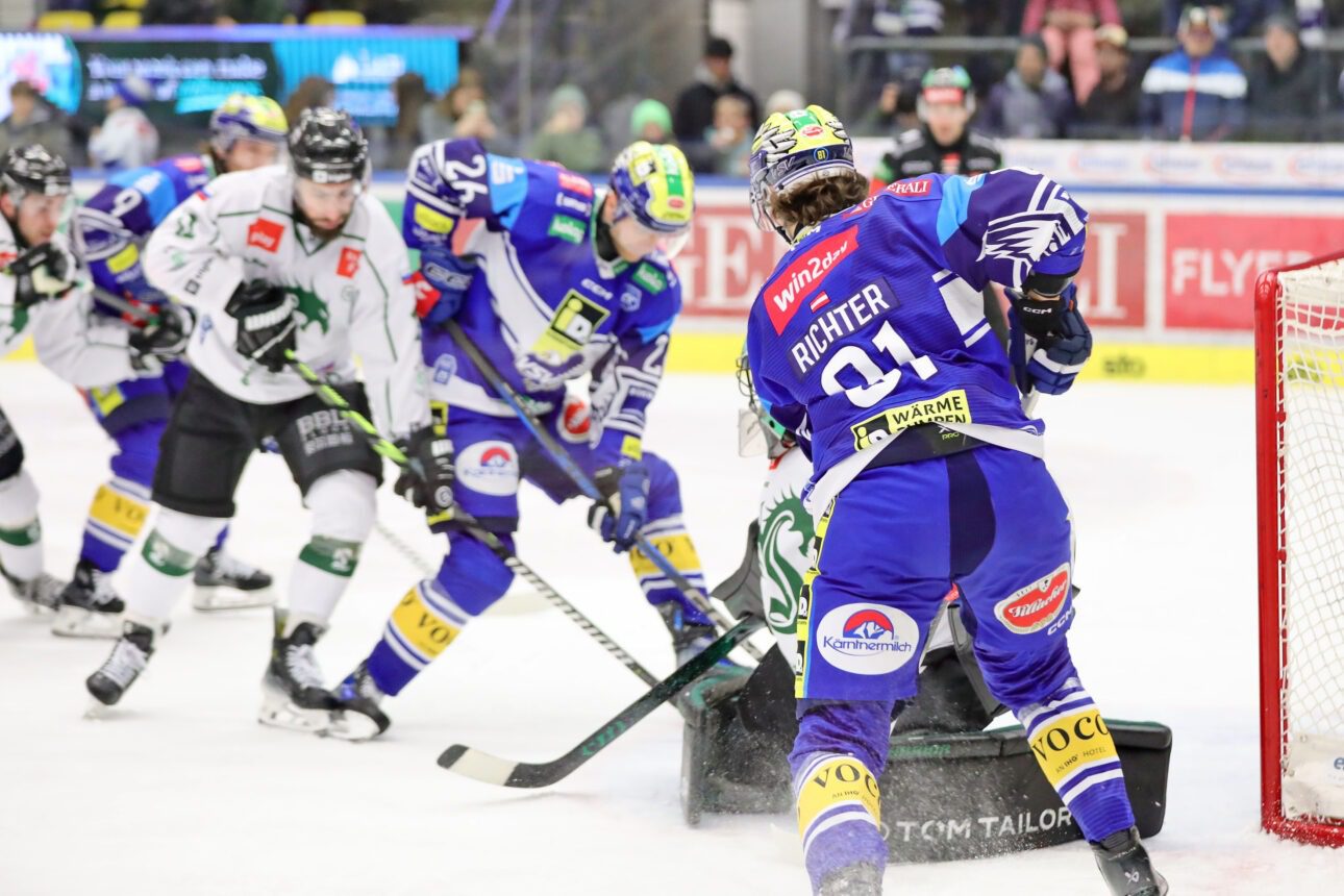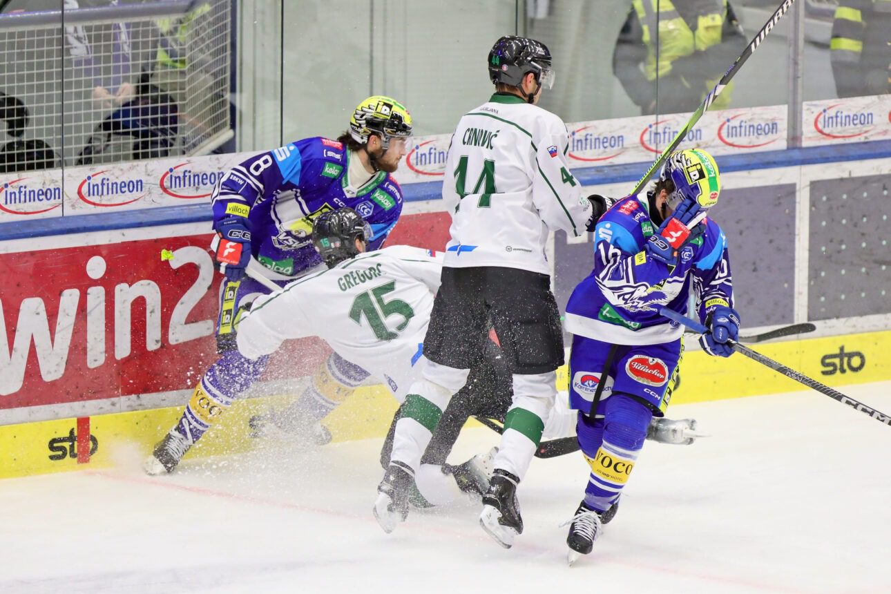 Obwohl die “Adler” über 30 Minuten im Rückstand lagen, siegten sie letztlich verdient mit 6:5 gegen HK SZ Olimpija Ljubljana. In einem rasanten Spiel sorgten Rebernig (2x), Hancock (2x), Wallenta und Richter für die Treffer der “Blau-Weißen”. Eine Verschnaufpause bleibt jedoch kaum, denn bereits am Sonntag geht es in Graz erneut um wichtige Zähler!