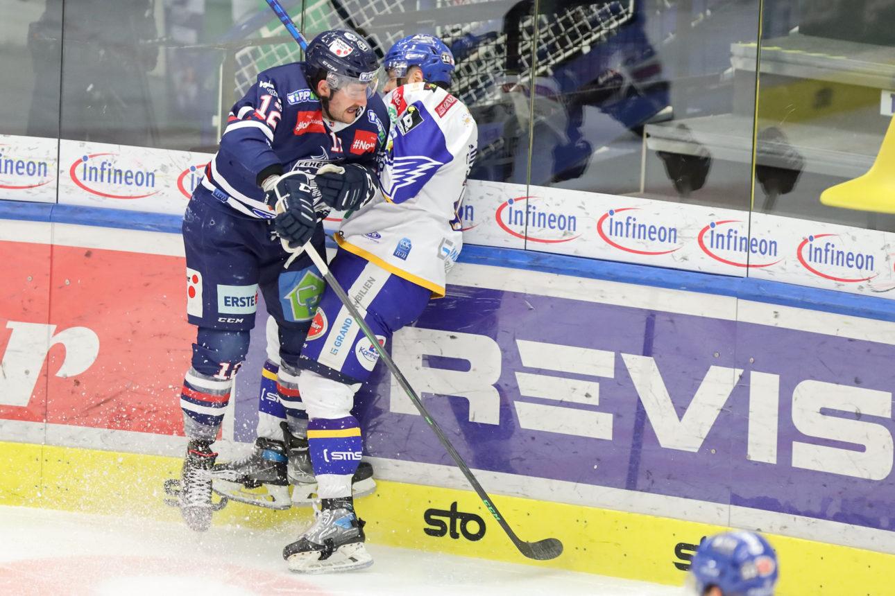 Der nächste Akt im Halbfinal-Showdown zwischen den „Adlern“ und den „roten Teufeln“ aus Fehervar ging heute in der Villacher Stadthalle in Szene. VSV-Headcoach Rob Daum durfte sich zwar über die Rückkehr des wieder genesenen Alexander Rauchenwald freuen, musste jedoch weiterhin auf Yannic Pilloni, Chris Collins sowie Jamie Fraser und Alexander Schmidt verzichten. Beide Teams begannen etwas abwartend, versuchten aus einer gesicherten Abwehr heraus noch vorne zu spielen. In der 4. Minute jedoch ging es Schlag auf Schlag: Zuerst hatte Benjamin Lanzinger die Führung am Schläger, aber im direkten Gegenstoß jubelten die Gäste – Joshua Atkinson verwandelte einen schnell gespielten Konter zum 0:1 (4.). VSV-Goalie Tomi Karhunen war absolut machtlos. Die „Adler“ versuchten zu reagieren, doch in der 8. Minute waren es wieder die Ungarn, die diesmal im 3-gegen-2 über Andrew Sarauer unbedrängt zum Abschluss kamen, aber Karhunen rettete mit dem Blocker in Extremis. In der 14. Minute gab es das erste Powerplay für die Blau-Weißen: Die Villacher spielten stark, erarbeiten sich auch einige gute Ausgleichschancen, doch es blieb weiter bei der knappen Führung der Gäste. Damit ging es auch zur ersten Drittelpause in die Kabinen.