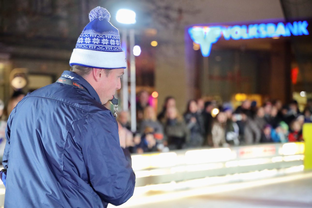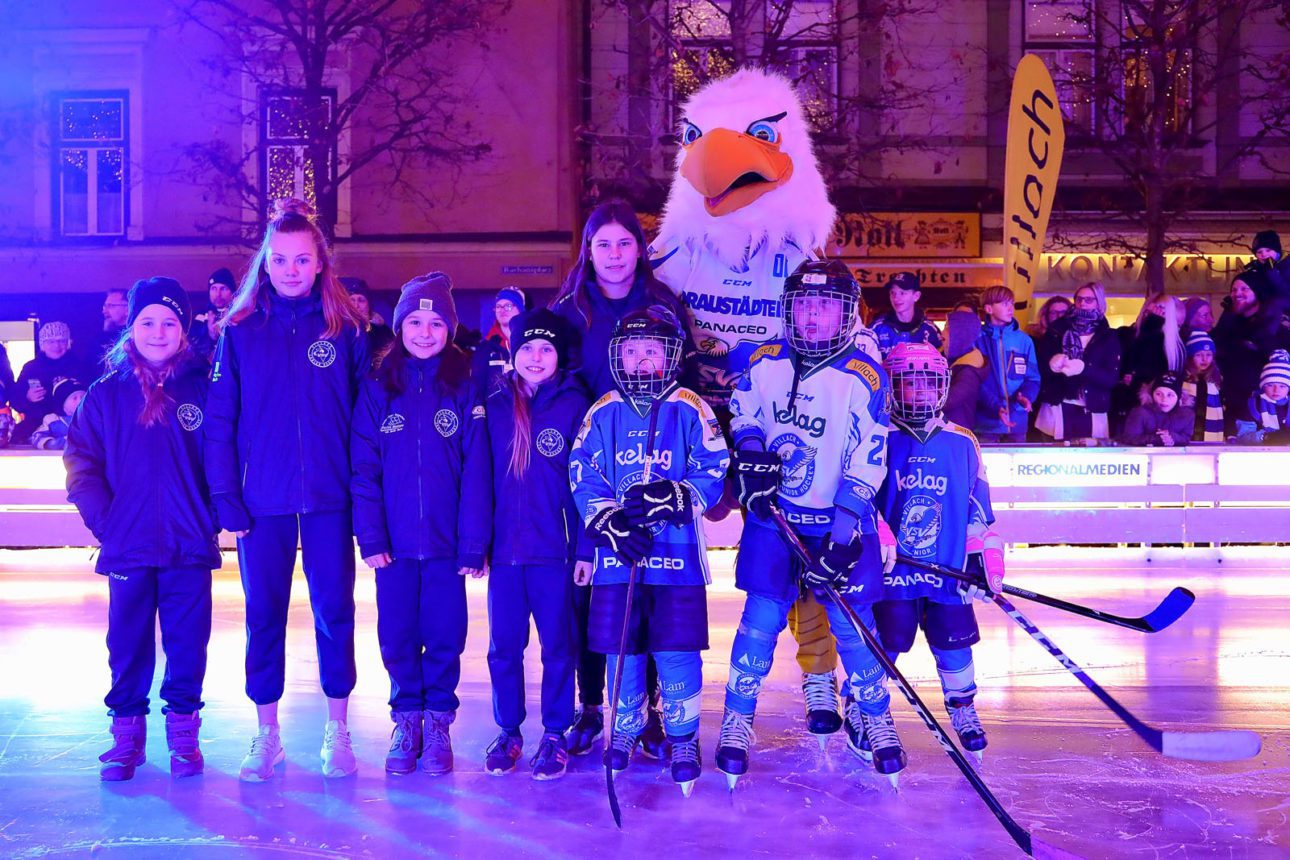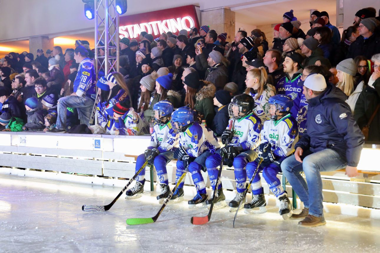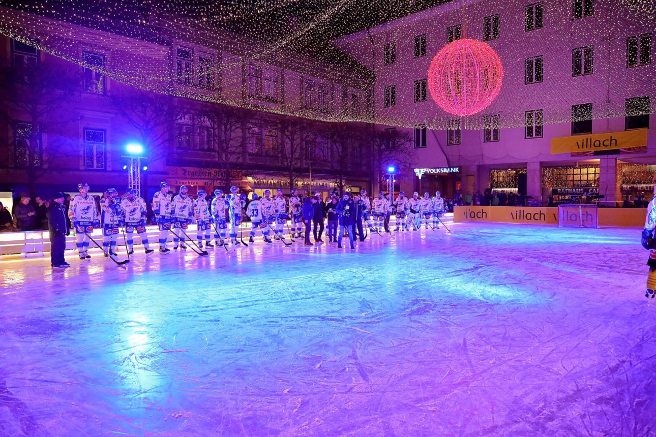 Bereits im Vorfeld heizten die Kultband „Söhne Villachs“ die Stimmung in der Innenstadt an. Bevor dann die Großen zur Landung am Rathausplatz ansetzten, zeigten die jüngsten VSV-Cracks auf der Open-air-Eisarena ihr Können und flitzten gekonnt über das Eis. Dabei bewiesen die Cracks der U8 und U9 eindrucksvoll, dass man sich über den Hockey-Nachwuchs bei den „Adlern“ keine Sorgen machen muss.