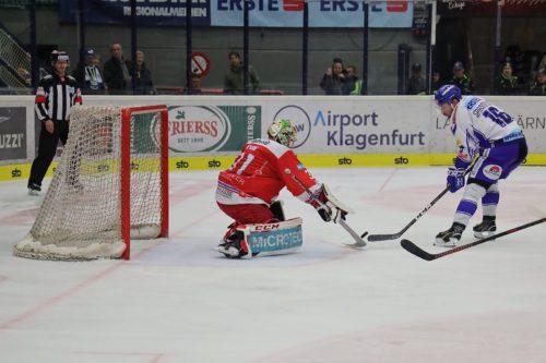 Im dritten Abschnitt kamen die „Adler“ mit viel Schwung aus der Kabine und erarbeiteten sich durch Collins, Karlsson oder Ulmer gute Chancen – doch Irving im Tor der Südtiroler war stets auf dem Posten. Der VSV drückte. Auch eine weitere Top-Chance durch Alexander Lahoda führte nicht zum Ausgleich – der junge Villacher scheiterte im 1-gegen-1 am Schlussmann der Südtiroler. Der VSV nahm nun von Minute zu Minute mehr Risiko, drückte die Bozner ins eigene Drittel. Zwei Minuten vor dem Ende erhielt der VSV eine Überzahl zugesprochen: Der VSV riskierte nun alles, nahm Maxwell aus dem Tor und versuchte im 6-gegen-4 den Ausgleich zu erzwingen. Leider vergebens, die Südtiroler erhöhten hingegen mit zwei empty-net-Treffern auf 1:4.