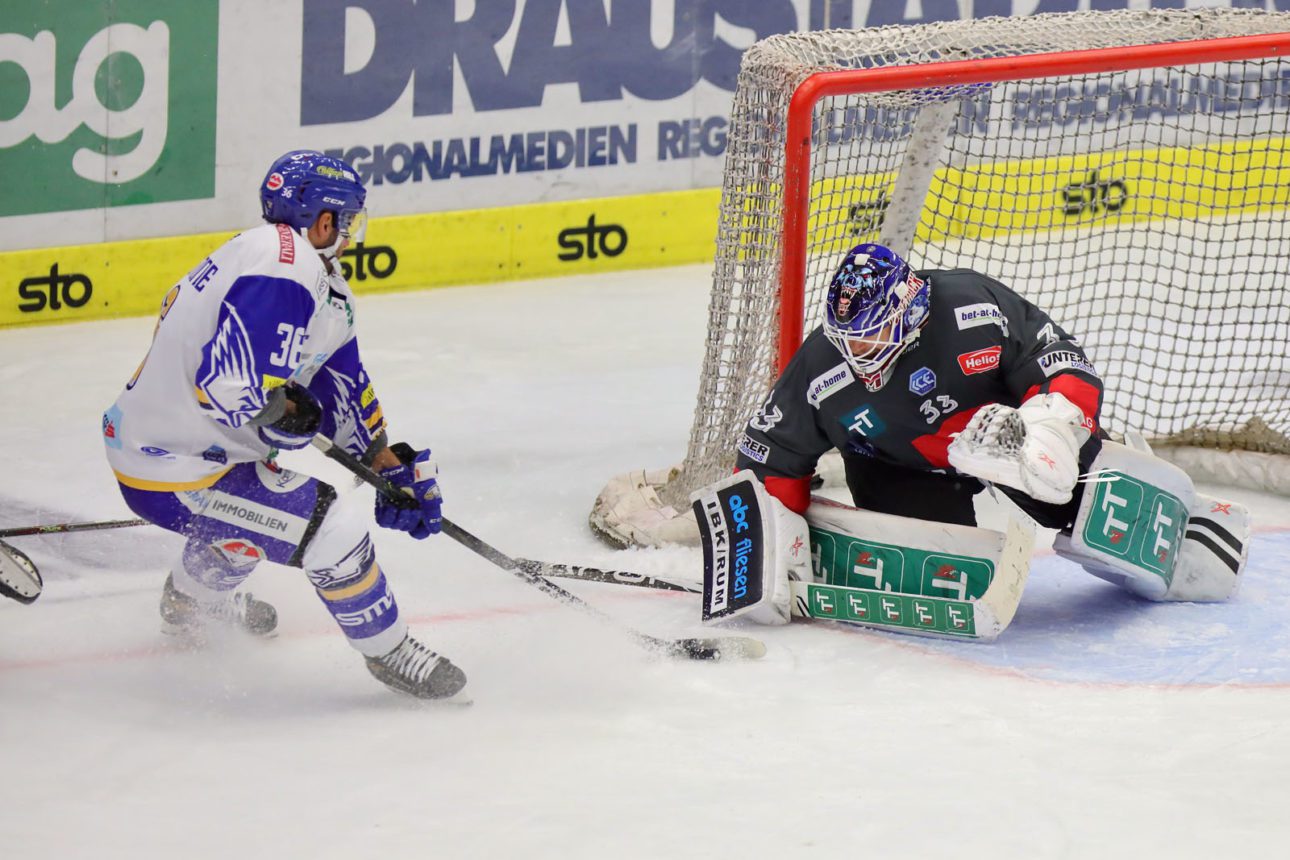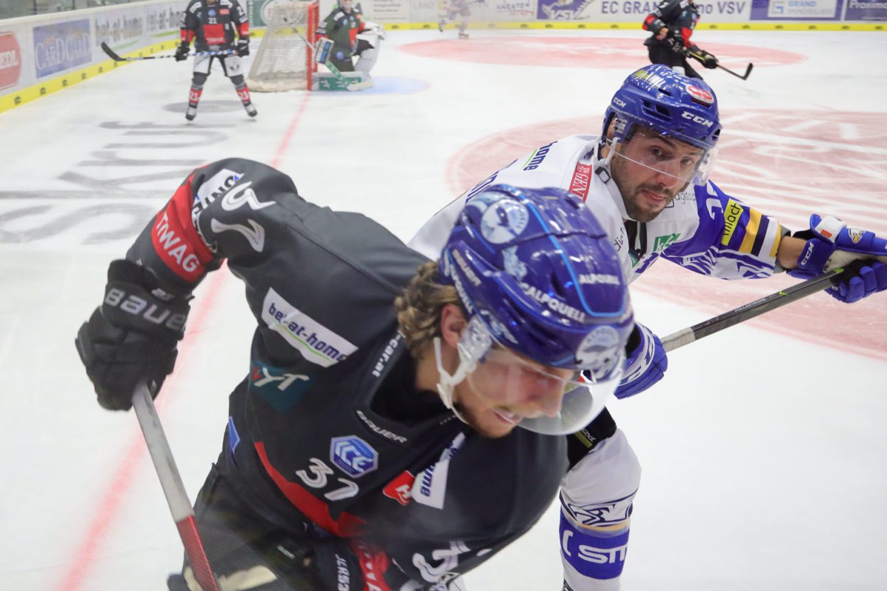 Der Schlussabschnitt begann gleich nach wenigen Sekunden mit einer Chance für den VSV, doch Maxi Kammerer konnte die Scheibe nicht im Gehäuse der „Haie“ unterbringen. Zum Jubeln gab es für den VSV erst wieder in der 54. Minute – Sahir Gill verkürzte aus kurzer Distanz auf 2:4-Toren. Und jetzt ging es plötzlich Schlag auf Schlag: Wieder war es Maxi Kammerer, der mit seinem zweiten Treffer auf 3:4 verkürzte (54.). Die „Adler“ drückten auf den Ausgleich, den Martin Ulmer kurz vor Schluss sogar auf den Schläger hatte, doch es blieb am Ende bei der knappen Niederlage.