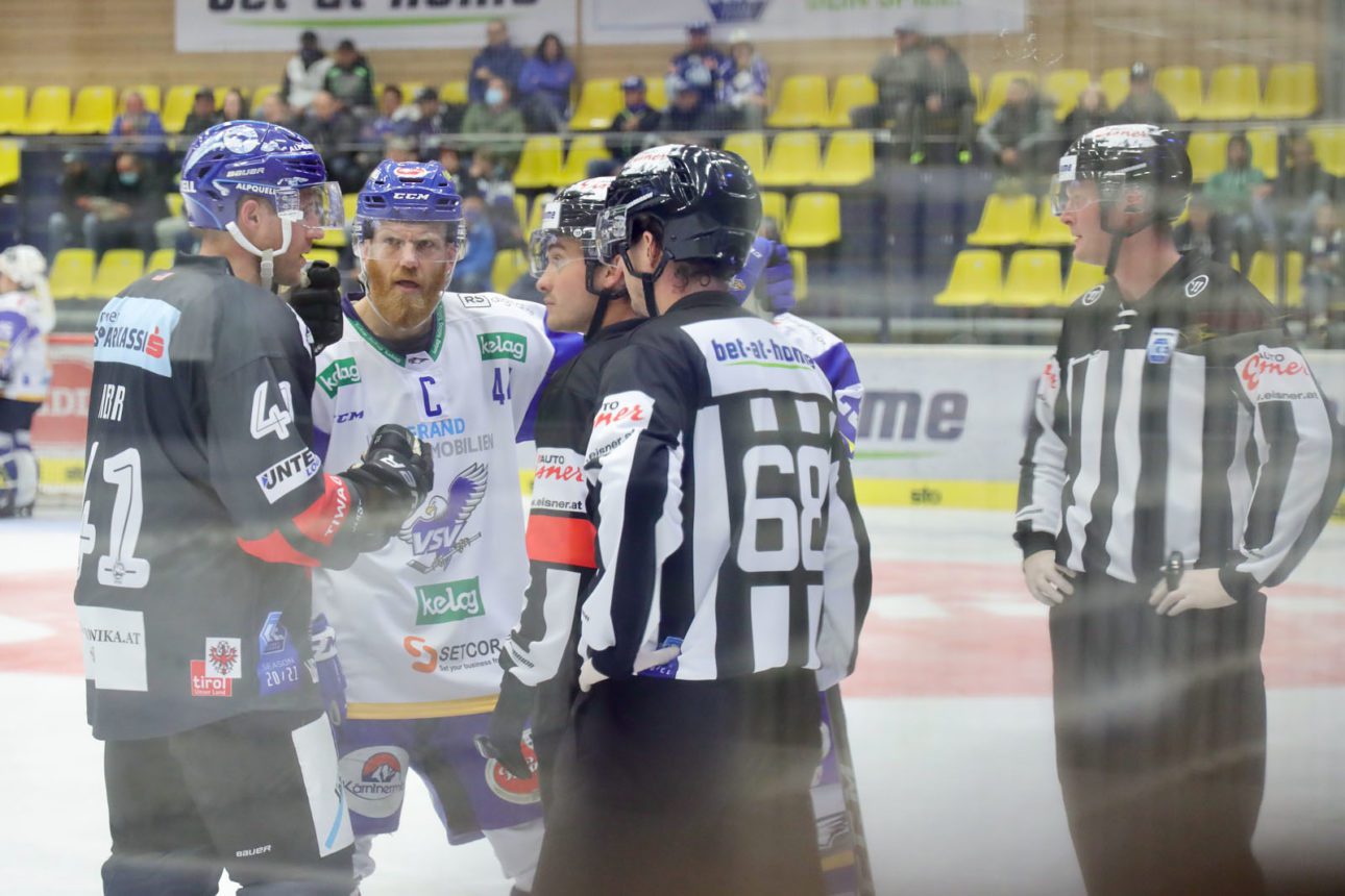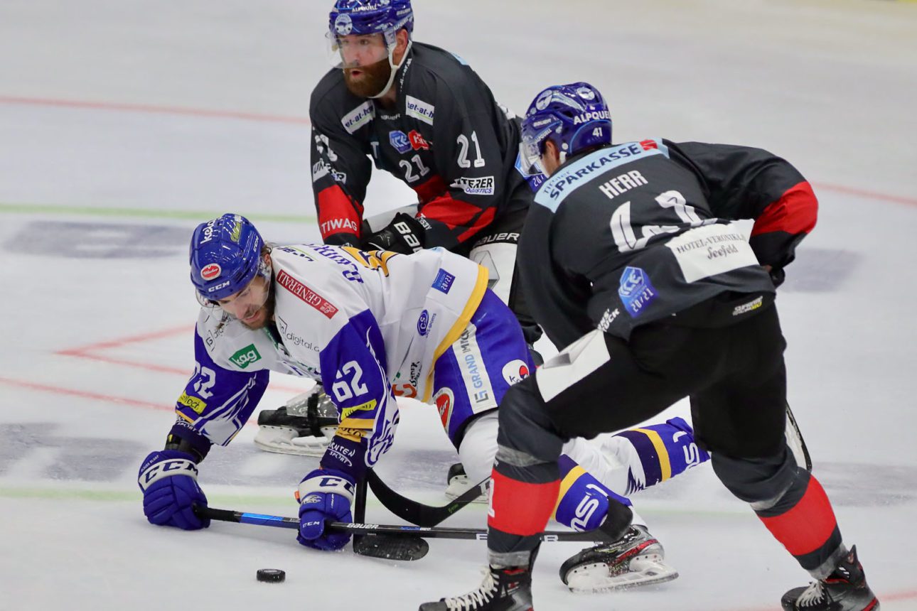 Nach 204 Tagen ohne Meisterschafts-Eishockey war es heute in der Villacher Stadthalle endlich wieder soweit: Die „Adler“ trafen bei der Liga-Heimpremiere auf die „Haie“ aus Innsbruck. VSV-Coach Dan Ceman hatte gegenüber dem Spiel gegen Salzburg einige Umstellungen im Team vorgenommen – im Tor begann Youngster Alexander Schmidt, außerdem wechselte Maxi Kammerer in die erste Linie zu Sahir Gill und Scott Kosmachuk. Die Blau-Weißen wollten sich für die Niederlage am Freitag in Salzburg rehabilitieren: Die ersten Riesenchancen für die „Adler“ hatten Jerry Pollastrone und Scott Kosmachuk, doch quasi im Gegenzug dann ein Schock im „Adlerhorst“: Daniel Ciampini traf mit der ersten Innsbrucker Chance zum überraschenden 0:1 (5.). Die Blau-Weißen versuchten das Spiel an sich zu ziehen: In der 9. Minute brach Kosmachuk mit einem unwiderstehlichen Antritt durch, war von den Innsbruckern nicht mehr zu halten, scheiterte jedoch ganz knapp an „Haie“-Schlussmann Thomas McCollum. Weitere Chancen gab es durch Matt Mangene oder Chris Collins, aber kein Treffer. Die Tore erzielten die Innsbrucker mit einem Doppelschlag. Nach einem Puckverlust im Mitteldrittel war es Deven Sideroff, der das 0:2 erzielte (17.). Und schon eine Minute später der nächste Treffer durch Ciampini (19.).