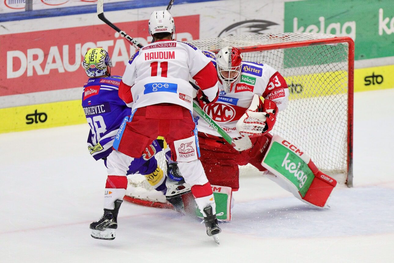 Es war ein spannendes, spektakuläres Derby, das die “Adler” am Ende nach hartem Kampf mit 4:2-Treffern für sich entschieden. Zum Matchwinner avancierte John Hughes mit gleich zwei Treffern sowie J.P. Lamoureux, der gleich 43 Schüsse der Klagenfurter parierte.
