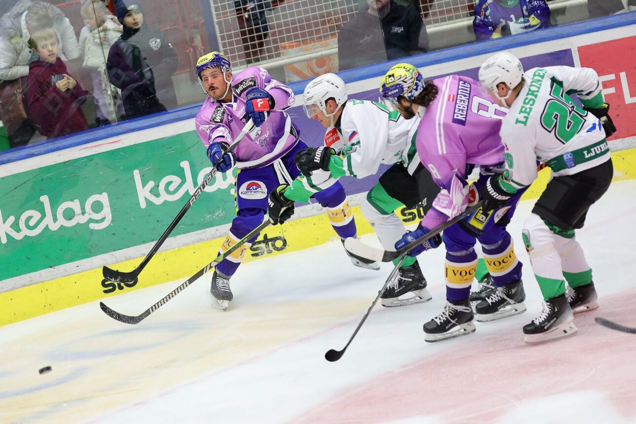 Im Schluss-Drittel kamen die Gäste viel, viel besser aus der Kabine: In 45. Minute verkürzten sie durch Nik Simisic mit einem sehenswerten Treffer genau ins Kreuzeck zum 4:3 und nur eine Minute später war es abermals Ville Leskinen, der sogar den 4:4-Ausgleich erzielte. Zudem musste in der 48. Minute auch noch Alexander Rauchenwald wegen Hakens für zwei Minuten auf der Strafbank Platz nehmen. Und das Unglück nahm seinen Lauf: Nach nur neun Sekunden in Überzahl drehten die Gäste das Match vollends – Leskinen sorgte mit seinem dritten treffer an diesem Abend sogar für die 4:5-Führung der Laibacher. Die Blau-Weißen versuchten zwar noch alles, aber die Gäste machten Sack per empty-net-Treffer endgültig zu.