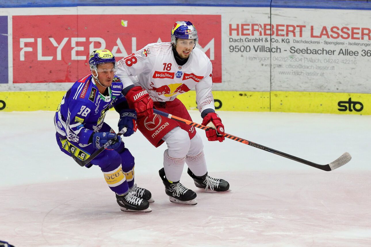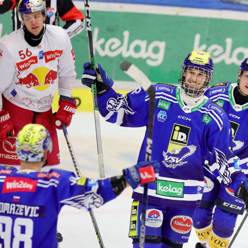 Die “Adler” wollten zurück auf die Erfolgsspur, die “Bullen” ihre aktuelle Siegesserie verlängern. Das waren die Vorzeichen für das Liga-Spitzenspiel der Blau-Weißen gegen die Gäste aus der Mozartstadt. Das Match begann von beiden Seiten eher vorsichtig, man versuchte aus einer gesicherten Abwehr heraus zum Erfolg zu kommen. In der 4. Minute tauchten die Blau-weißen durch Kevin Hancock erstmals ganz gefährlich vor Salzburg-Goalie Atte Tolvannen auf. Der Villacher Center konnte nur mehr mit einem Foul gestoppt werden. Das führte zwar zum ersten Villacher Überzahlspiel, aber die Heimischen konnten das Powerplay nicht zur Führung nutzen. Aber in der 8., Spielminute war es dann soweit: Ein Traumkombination der vierten Villacher Linie über Felix Maxa, und Alex Wall schloss Elias Wallenta perfekt hoch unter die Latte ab – 1:0. Die “Adler” drückten weiter, zwangen die Salzburger zu Strafen und erarbeiteten sich eine Torchance nach der anderen. Die Folge: In numerischer Überzahl drückte Andrew Desjardins den Puck zum 2:0 über die Linie (11.). Aber das war noch nicht alles: Der Assist kam von John Hughes, der somit seinen 1000. Liga- Punkt erzielte und damit ganz neue, historische Maßstäbe setzte. Gratulation Johnny!!! Kurz vor Schluss gelang den Gästen durch Dennis Robertson mit einem schön kombinierten Angriff den Anschlusstreffer zum 2:1 (18.).