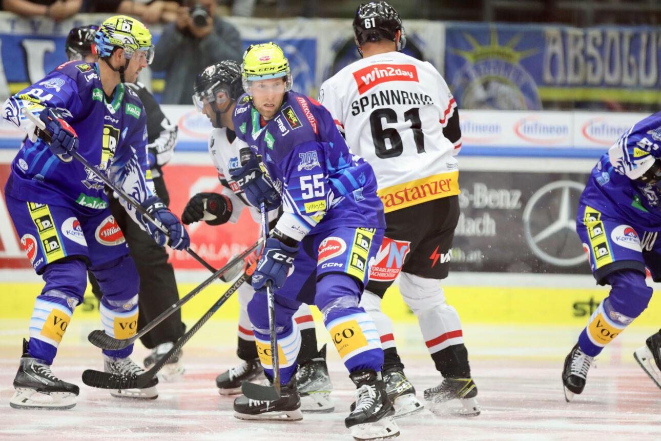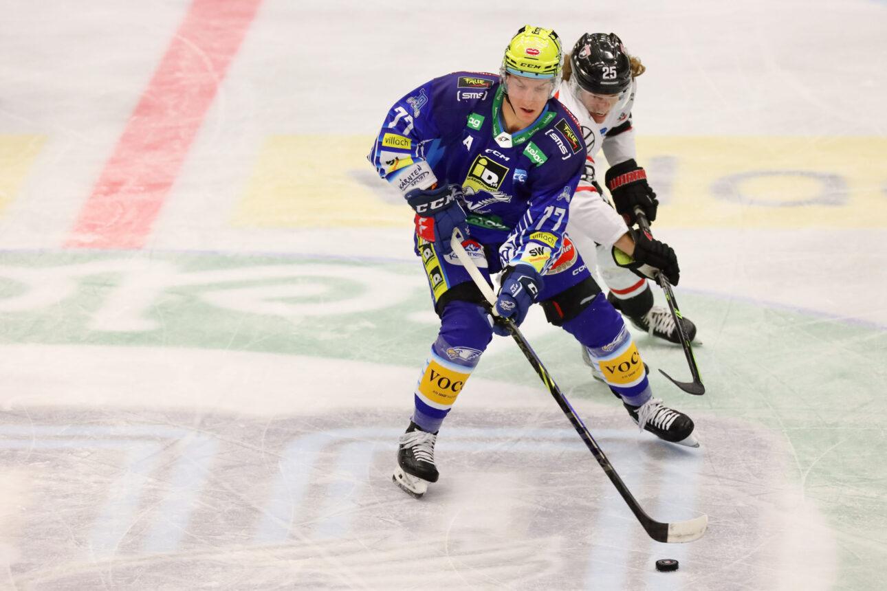Nach zwei Niederlagen in Folge zum Saisonauftakt hatten sich die „Adler“ gegen den Liga-Neuling aus Vorarlberg viel vorgenommen. EC iDM VSV-Headcoach Rob Daum hatte die ersten beiden Angriffslinien umgestellt – Marco Richter stürmte in der ersten Formation mit Andrew Desjardines und Robert Sabolic, gleichzeitig rückte Blaz Tomazevic zu Chris Collins und Dominik Grafenthin. Zu Beginn waren es aber die Gäste, die für die ersten Akzente sorgten und immer wieder gefährlich vor dem Tor von VSV-Goalie J.P. Lamoureux auftauchten. Diese optische Überlegenheit nutzten die Gäste in der 7. Minute zur Führung – den Trefferzum 0:1 erzielte Hampus Eriksson. Aber die „Adler“ schlugen zurück, die vierte Villacher Linie sorgte für den Ausgleich zum 1:1 (7.). Den Treffer erzielte Elias Wallenta mit seinem bereits zweiten Saisontreffer. Doch das war noch nicht alles in den ersten elf Minuten: Wiederum kombinierten sich die Gäste durch die Villacher Abwehr und erhöhten durch Christian Bull auf 1:2 (11.). Damit war es dann mit den Toren in diesem Drittel vorbei. Erwähnenswert waren noch zwei Top-Chancen der Blau-Weißen: Maximilan Rebernig und Dominik Grafenthin scheiterten jedoch aus aussichtsreichen Positionen.