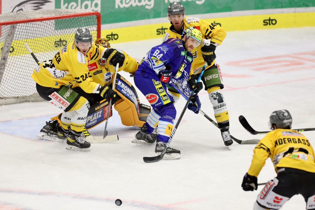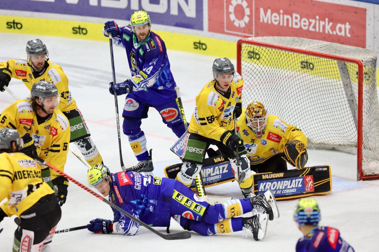 Schlechte Nachrichten gab es für VSV-Headcoach Rob Daum heute nach dem Vormittagstraining: Zu den verletzten beziehungsweise erkrankten Spielern Maximilan Rebernig, Elias Wallenta und Julian Payr gesellten sich heute auch noch Center Alexander Rauchenwald mit einer Unterkörperverletzung hinzu. Dennoch war die Marschroute der „Adler“ glasklar: Gegen Pustertal wollte man sich für die Niederlage in Bruneck zu Saisonbeginn revanchieren. Das bedeutete: Man wollte unbedingt die drei Punkte holen. Die Blau-Weißen starteten jedoch etwas abwartend, es dominierten zu Beginn bei beiden Teams die Defensivarbeit. Die großen Torchancen blieben somit auch aus. In der Folge hatten die „Adler“ gleich drei Powerplay-Möglichkeiten, konnten daraus jedoch kein Kapital schlagen. In der 14. Minute wäre es jedoch beinahe dennoch zur Villacher Führung gekommen, aber Robert Sabolic scheiterte mit seiner Direktabnahme am Torgestänge.