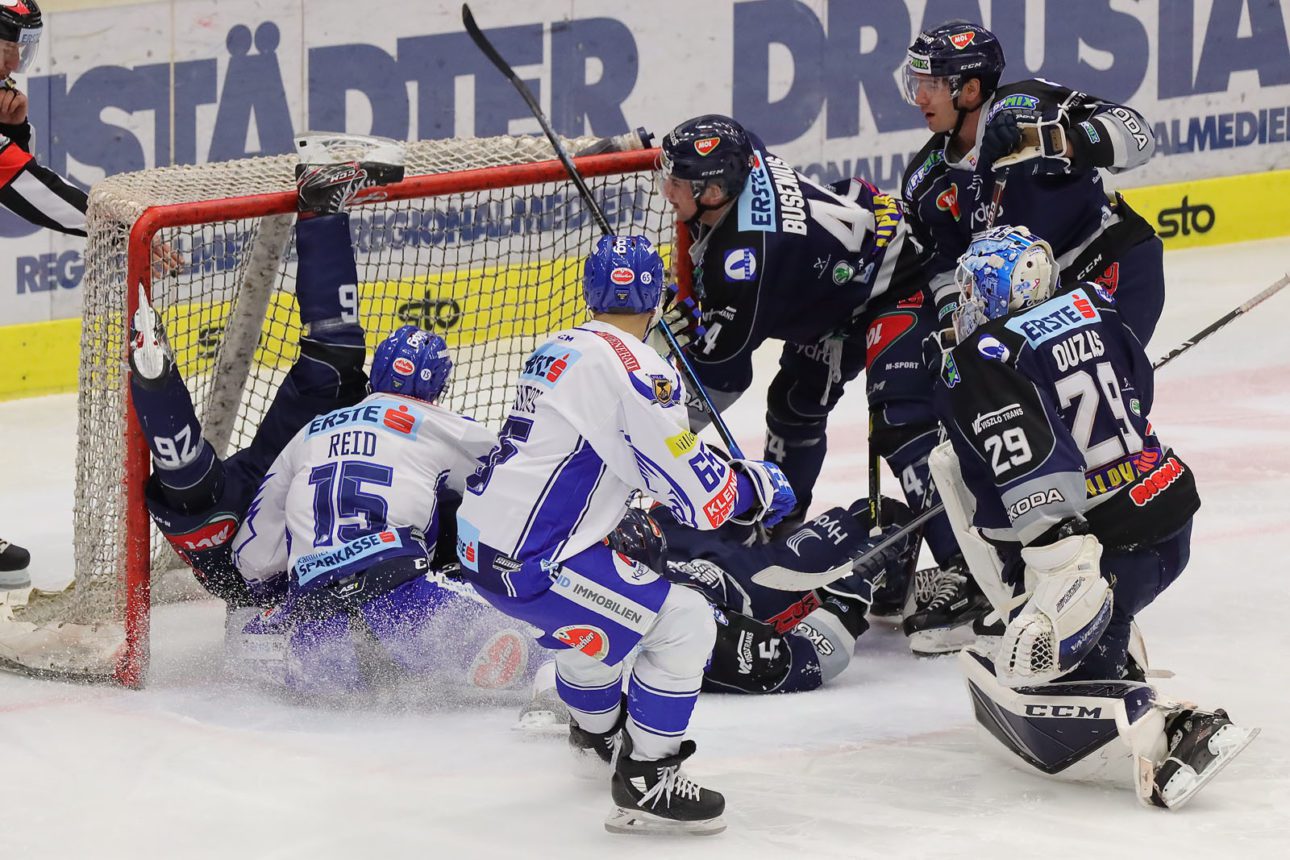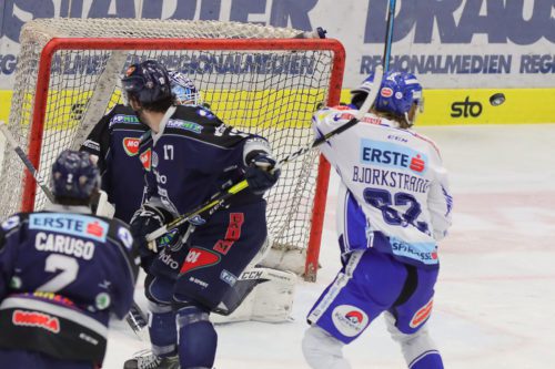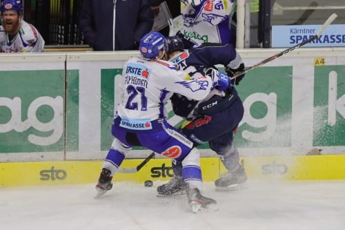 Zweiter Akt im Heimspiel-Doppel: Nach dem hart erkämpften Sieg gegen die Black Wings aus Linz wollten die „Adler“ mit einem Sieg gegen Szekesfehérvár AV19 nachlegen. Schon nach 55 Sekunden leuchtete das 1:0 von der Anzeigetafel: Patrick Bjorkstrand zog von halblinks auf Michael Ouzas im Tor der Ungarn, seinen Schuss konnte Ouzas noch abwehren, doch dann beförderte Brodie Reid die Scheibe nach einem Gestocher vor dem Tor ins Netz. Doch zu früh gefreut: Nach Videostudium wurde der Treffer wegen „Schlittschuhtor“ nicht anerkannt. Doch die „Adler gaben weiter Gas, drückten den Gegner ins eigene Drittel, kamen zu zahlreichen Chancen. Die Folge: nur drei Minuten später der Führungstreffer – Kevin Schmidt vollendete nach perfektem Zusammenspiel von Martin Ulmer und Miika Lahti zum 1:0 (4.) Der VSV war zwar das deutlich stärkere Team, die Ungarn kamen doch quasi aus dem Nichts durch einen verdeckten Schuss durch Bence Szabo glücklich zum Ausgleich (9.). Nur eine Minute später musste Mark Cundari wegen Beinstellens für zwei Minuten auf die Strafbank – Fehérvár kam dabei jedoch zu keiner einzigen nennenswerten Chance, der VSV zeigte ein sehr gutes Penaltykilling. Besser machte es der VSV: Nach einer Traumkombination über Martin Ulmer und Marko Pöyhönen erzielte abermals Kevin Schmidt das 2:1(13.PP) Trotz einiger weiterer guter Möglichkeiten für die „Adler“ durch Ulmer, Bjorkstrand, Pollastrone oder Schmidt blieb es nach 20 Minuten beim 2:1.