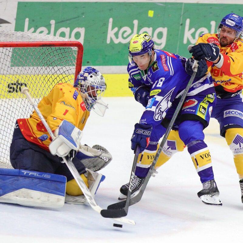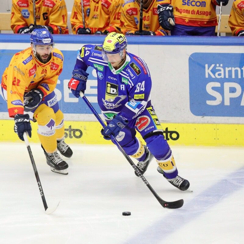 Im Schlussdrittel ein ähnliches Bild – die Blau-Weißen dominierten, brachten die Scheibe aber vorerst nicht im Tor der Gäste unter. In der 45. Minute war es beispielsweise Alex Wall, der aus kurzer Distanz das halbleere Tor verfehlte. Die blau-weiße Erlösung folgte nur zwei Minuten später in numerischer Überzahl: John Hughes knallte den Puck zur 1:0-Führung ins Netz (48.). Aber auch die Gäste hatten im Powerplay – Alex Wall saß wegen Behinderung für zwei Minuten auf der Strafbank – ihre Chancen. Da konnten sich die Adler wieder einmal auf Goalie Lamoureux verlassen. Doch wie aus dem Nichts gelang Asiago kurz vor Schluss und noch dazu mit einem Mann weniger der 1:1-Ausgleich – Torschütze Alexander Ierullo. Die Overtiumke brachte keinen Sieger, erst im Penalty-Shootout sicherten sich die Blau-Weißen den Zusatzpunkt. Sabolic und Luciani trafen, J.P. Lamoureux parierte zudem gleich zwei Penalty-Shots – somit siegte der VSV mit 2:1.
