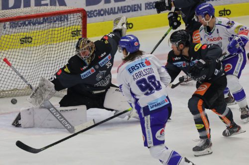 Schon vor dem Spiel gab VSV-Sportvorstand Gerald Rauchenwald die Marschrichtung für die letzten fünf Spiele des Grunddurchganges vor: „Ab jetzt sind für uns alle Partien als Finalspiele zusehen!“ Und die „Adler“ hörten auf ihren Chef: Sie starteten mit aggressivem und druckvollem Angriffen und auch mit der ersten Chance durch Jerry Pollastrone, doch Dornbirn-Goalie Juha Järvenpää war auf dem Posten. Der VSV machte Druck kreierte viele Chancen, doch man scheiterte vorerst am starken Goalie der Vorarlberger. Die besten Möglichkeiten gab es für Alagic, Reid, Bjorkstrand, Karlsson, Collins oder Ulmer. Die Vorarlberger versuchten hingegen mit schnellen Kontern zum Erfolg zu kommen. Vor allem Emilio Romig sorgte immer wieder für Gefahr bei VSV-Goalie Brandon Maxwell. In Minute 16 gab es ein Powerplay für die „Adler“ und auch endlich das hochverdiente 1:0 (18.) – nach Pass von Jamie Fraser versenkte Brodie Reid mit einem Onetimer die Scheibe im Netz. Die Blau-Weißen wurden jetzt immer stärker, dominierten ganz klar das Geschehen am Eis und kamen zu Chancen im Minutentakt. So war es nur eine Frage der Zeit, bis zum nächsten Treffer: Patrick Bjorkstrand versenkte den Puck unter die Latte (19.). Doch quasi in letzter Sekunde des 2. Drittels verkürzte Keaton Ellerby quasi aus dem Nichts auf 2:1.