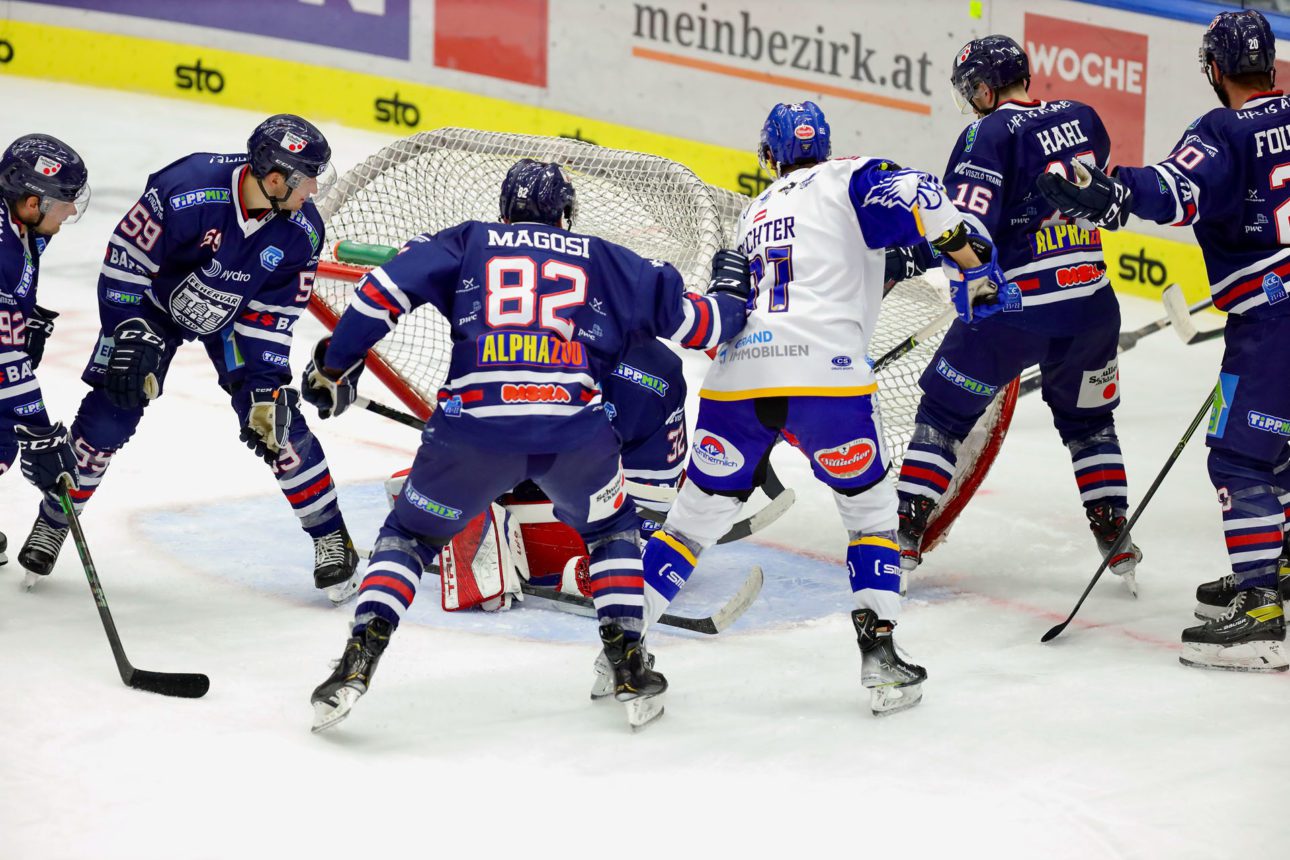 Was war das für ein Match zuletzt in Linz – die „Adler“ schienen schon aussichtslos mit zwei Toren zurück und drehten dennoch das Match mit zwei Treffern innerhalb von 38 Sekunden. Zudem holte man in der Overtime noch den Zusatzpunkt. Gegen die starken Ungarn aus Fehervar wollten die Blau-Weißen diesen Extra-Motivationsschub mitnehmen und auch gegen die Ungarn erstmals in dieser Saison punkten. Schon in den ersten Minuten entwickelte sich ein schnelles Spiel, die erste Torchance hatten die Gäste und gingen schon nach vier Minuten in Führung: Ein Schuss von Tim Campbell fand den Weg ins Tor. Die „Adler“ brauchten einige Minuten, um sich vom frühen Rückstand zu erholen. In der achten Minute sorgte die vierte Villacher Linie für ein Drangperiode, bei der Felix Maxa die beste Chance vorfand. Seinen Schuss konnte Rasmus Tirronen im Tor der Gäste jedoch mit dem Schoner parieren. Die Villacher erhöhten in der Folge das Tempo, erarbeiten sich ein Torchance nach der anderen. In der 13. Minute gab es zudem ein Powerplay für die Heimischen, dass die Villacher auch zum 1:1-Ausgleich nutzten: Scott Kosmachuk traf haargenau aus halblinker Position ins Kreuzeck. Kurz vor Drittelende hatte Kevin Moderer nach einem Energieanfall in Unterzahl sogar die Führung am Schläger – sein Backhand-Schuss ging jedoch ganz knapp über das Tor.